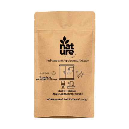 Το nature™ καθαριστικό αφαίρεσης αλάτων είναι ο Νο. 1 σύμμαχός σας στην καταπολέμηση των αλάτων, προσφέροντας γρήγορη και αποτελεσματική απομάκρυνση των αλάτων, των λεκέδων από σκληρό νερό και της παγιδευμένης βρωμιάς. Η προηγμένη τεχνολογία του βοηθά στην αποτροπή της επανεμφάνισης των λεκέδων, διατηρώντας τις επιφάνειες λαμπερές για περισσότερο χρόνο. Η επαναστατική του σύνθεση προστατεύει τις επιφάνειες χωρίς να προκαλεί φθορές, ενώ είναι ασφαλής στη χρήση, καθώς περιέχει μόνο υλικά φυσικής προέλευσης. Περιέχει 25 ταμπλέτες, οι οποίες μπορούν να διαλυθούν σε 2500 ml νερού.Όλες οι τιμές περιλαμβάνουν ΦΠΑ